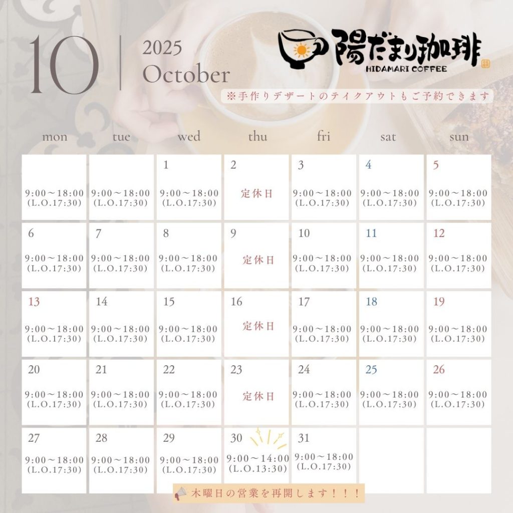 お客様からご要望の多かった 木曜日の営業 を、10月30日(木)より再開 いたします。