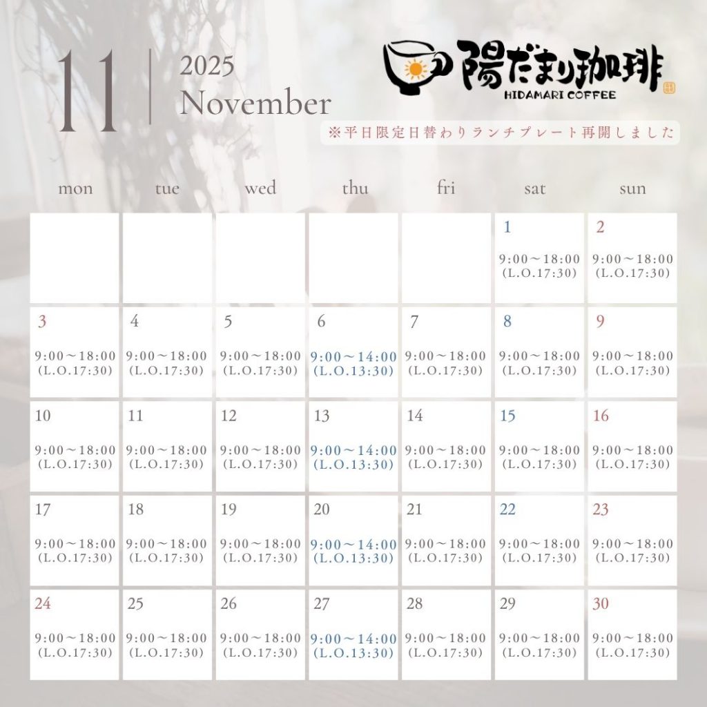 ※営業時間や定休日は、カレンダー画像をご確認ください。