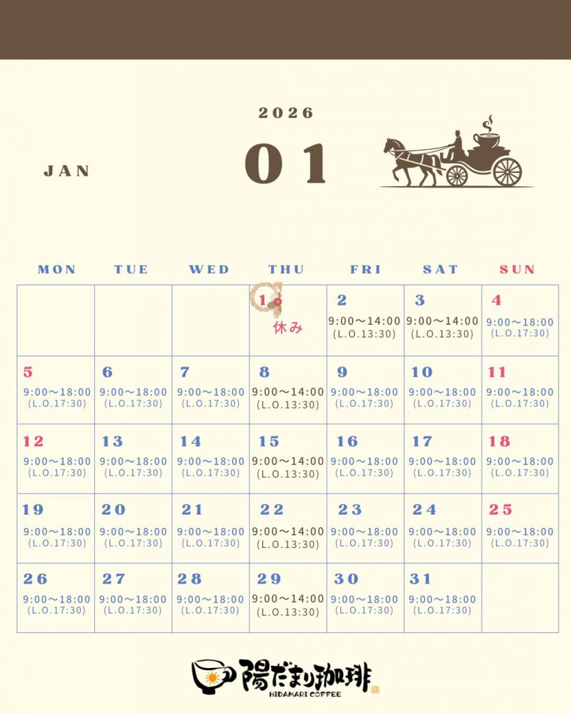 ぜひ1月も陽だまり珈琲へお立ち寄りください。