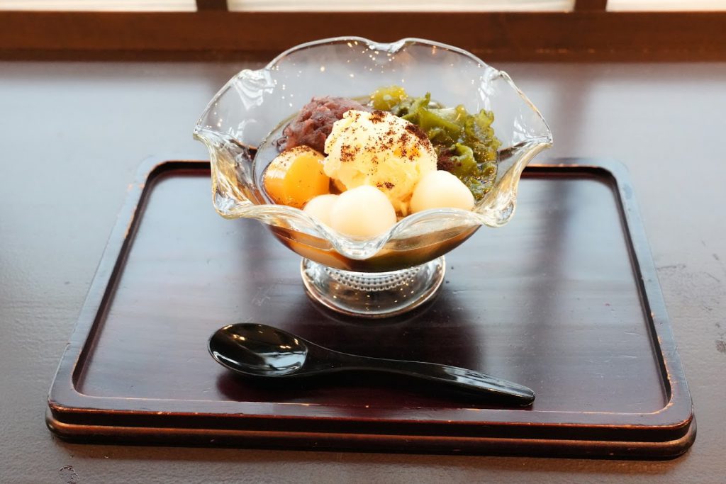 アイスクリームと、手作りの透明ゼリー・抹茶ゼリーを合わせました。